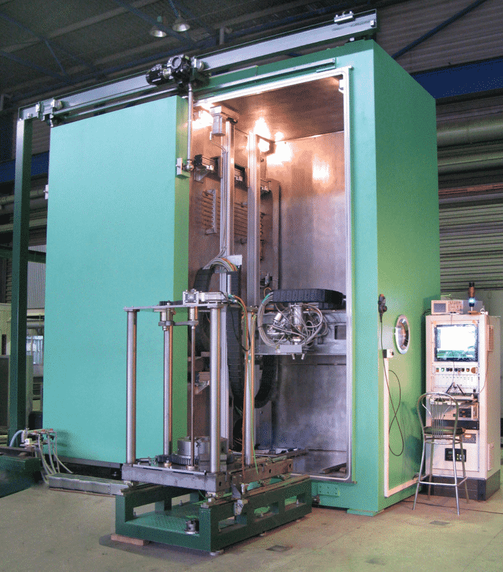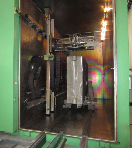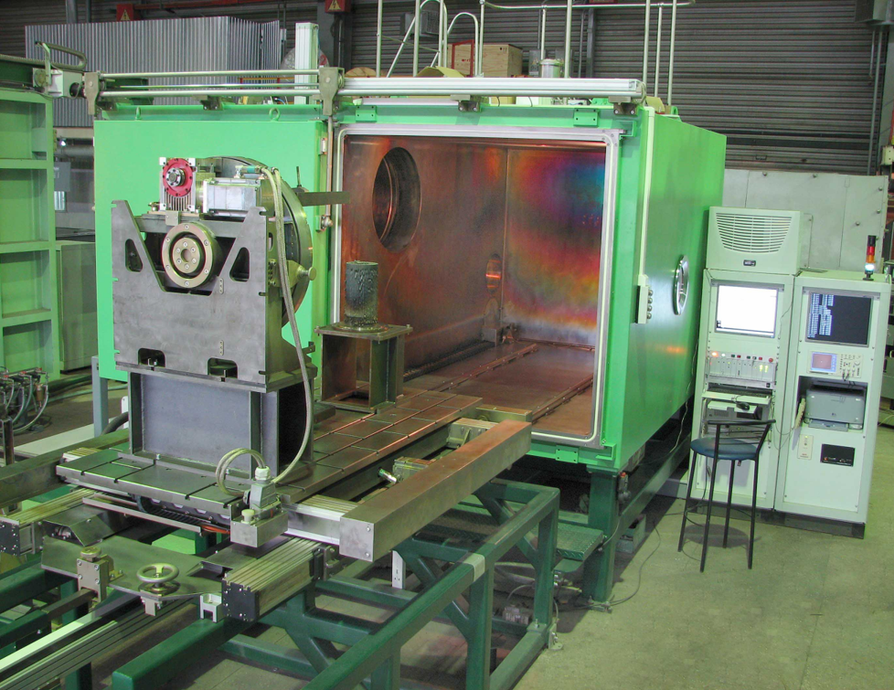 Volume of chamber is up to 50 m3. Electron gun is placed inside the chamber. Operational pressure is 5×10-4 mbar. The parts to be welded and the gun are moved inside the chamber by a high-precision manipulator in 3D dimensions and rotation