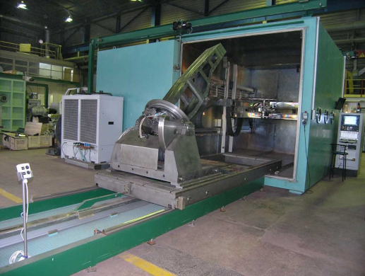 Volume of chamber is more then 50 m3.Accelerating voltage is 60 kV, electron beam current is up to 1000 mA. Operational pressure is 5×10-4 mbar. The parts to be welded and the gun are moved inside the chamber by a high-precision manipulator in 3D dimensions and rotation